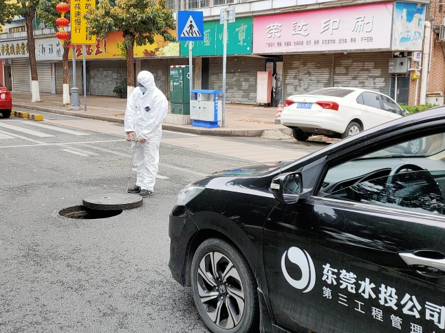 防疫期間市水務(wù)集團(tuán)專項(xiàng)巡檢隊(duì)伍檢查第九人民醫(yī)院周邊污水管網(wǎng)及泵站
